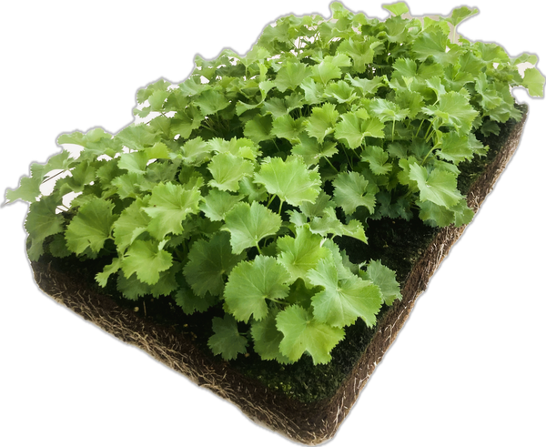 De Alchemilla mollis kant-en-klare mat is een onderhoudsarme bodembedekker die het hele seizoen een verzorgde uitstraling biedt. Nadat de mat is aangelegd, groeit de plant vrijwel zelfstandig en onderdrukt hij onkruid door zijn dichte bladstructuur. Tijdens de bloei in de zomer verschijnen kleine, heldergele bloemen die na verloop van tijd kunnen worden afgeknipt om de plant compact en netjes te houden.