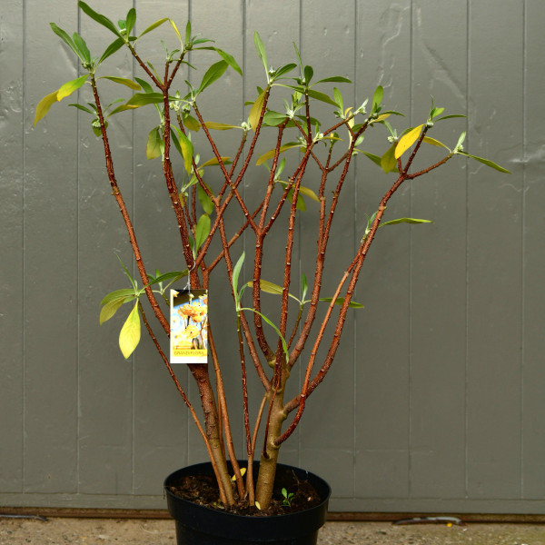 Edgeworthia chrysantha ‘Grandiflora’ wordt ook wel Papierstruik genoemd en is een bladverliezende heester. In de herfst verschijnen er al bloemknoppen, wat een prachtig gezicht is in de winter. In februari en maart groeien er heerlijke geurende gele bloemen aan het kale hout. Na de bloei groeien er purperen besjes aan de takken en verschijnen er weer frisse groene bladeren. De ‘Grandiflora’ groeit traag, maar kan een hoogte bereiken van ongeveer 150 tot 175 cm.