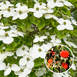 Geniet ieder seizoen van een ander sierlijk kenmerk van de Japanse grootbloemige Kornoelje (Cornus kousa) ‘China Girl’. De struik of kleine boom is geliefd om de schitterende bloei, opvallende vruchten en mooie herfstverkleuring. In de lente loopt de Japanse grootbloemige Kornoelje uit met eivormige tot ovale, lichtgegolfde, donkergroene bladeren. Na het uitlopen van het blad verschijnen rond juni de bijzondere schijnbloemen. Het geelgroene bloemhoofdje is omringd door vier grote crèmewitte schutbladeren. De opvallende, sierlijke schutbladeren lijken de bloem te vormen, toch is dat niet zo. In het najaar laat de ‘China Girl’ zich opnieuw van zijn beste kant zien door de vorming opvallende rode vruchten op rode stelen, die doen denken aan aardbeien of frambozen.