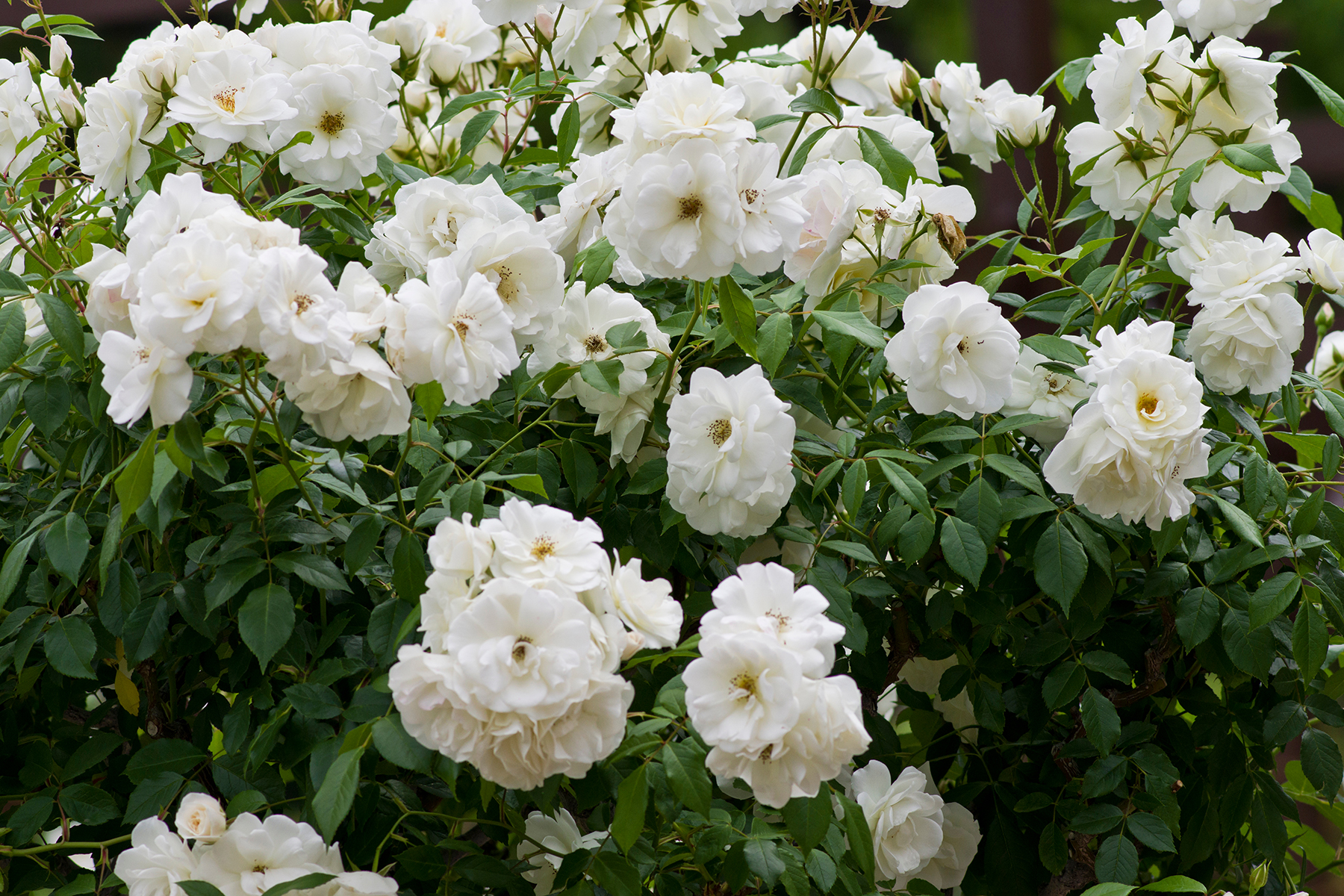 - Klimroos, zoals Rosa Climbing 'Iceberg' of Rosa 'Red Flame'