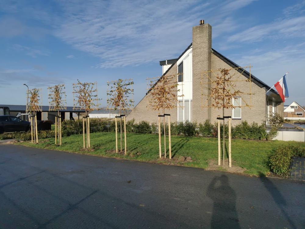 - Het plaatsen van boompalen en boomband (indien meebesteld)