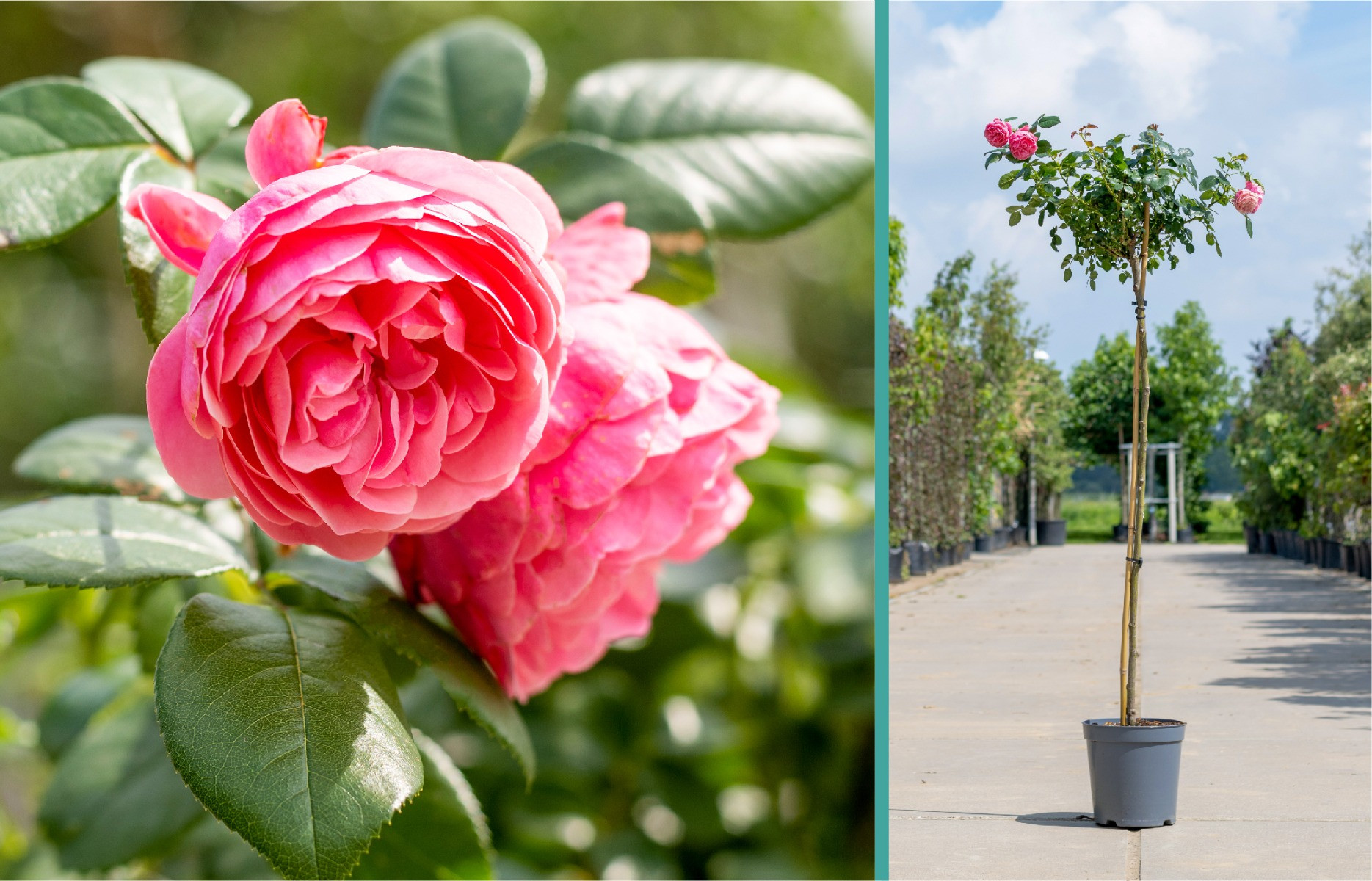 De Rosa 'Leonardo da Vinci' op stam is een zeer sterke roos met een overweldigende bloei. Van juni tot en met oktober bewonder je talloze grote, goed gevulde bloemen aan de doorbloeiende en bloeirijke stamroos. Deze zijn donkerroze van kleur, licht geurend en nostalgisch. Je hoeft je geen zorgen te maken om het weer; de rozen staan in trossen bij elkaar op stevige stelen en blijven ook bij regen mooi. Ze steken prachtig af tegen de glanzende, donkergroene bladeren, die in de winter loslaten. In het voorjaar loopt de stamroos 'Leonardo da Vinci' weer mooi groen uit. Door de bossige, maar compacte en opgaande groei is de Rosa 'Leonardo da Vinci' op stam geschikt voor ieder type tuin en ook voor het terras of balkon. Een klein stukje grond of een grote pot is al voldoende voor deze sfeermaker. Vanwege het fraaie uiterlijk, maar ook door het sterke karakter, zul je zeker geen spijt krijgen van de aanplanting. De Rosa 'Leonardo da Vinci' staat bekend om zijn zeer goede gezondheid, ziekteresistentie en winterhardheid. Kortom, een topper van een roos!