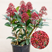 De Skimmia japonica ‘Rubella’ is een prachtige sierheester en kleurrijke aanvulling op de wintertuin. Hierom wordt de bloeiende struik dan ook vaak in het najaar aangeplant. De Skimmia is geschikt voor borderbeplanting, aanplanting in een pot of mand voor op het terras of balkon, of onderbeplanting bij bomen of grote heesters. De wintergroene sierheester verlangt naar een beschutte standplaats in de halfschaduw of schaduw en een (licht) vochtige, zurige, humusrijke bodem. Bij te veel zonlicht, een te droge en/of kalkrijke grond, kunnen de bladranden geel kleuren. We adviseren om speciale aanplantgrond voor zuurminnende planten of tuinturf te gebruiken voor een goed bodemklimaat voor de Skimmia. Heb je de charmante heester aangeplant? Geef dan voldoende water, zodat de wortels aan de bodem kunnen wennen.
